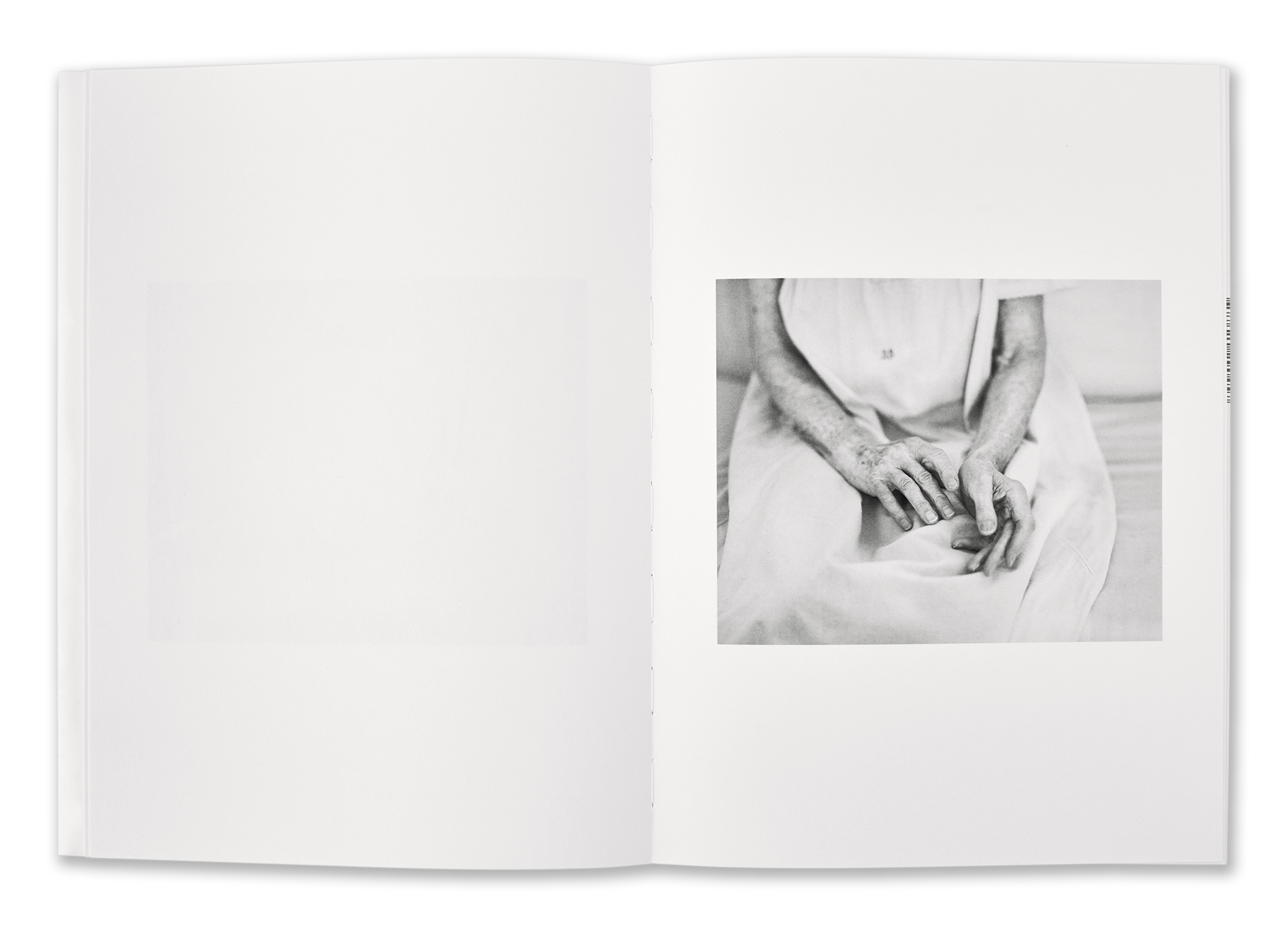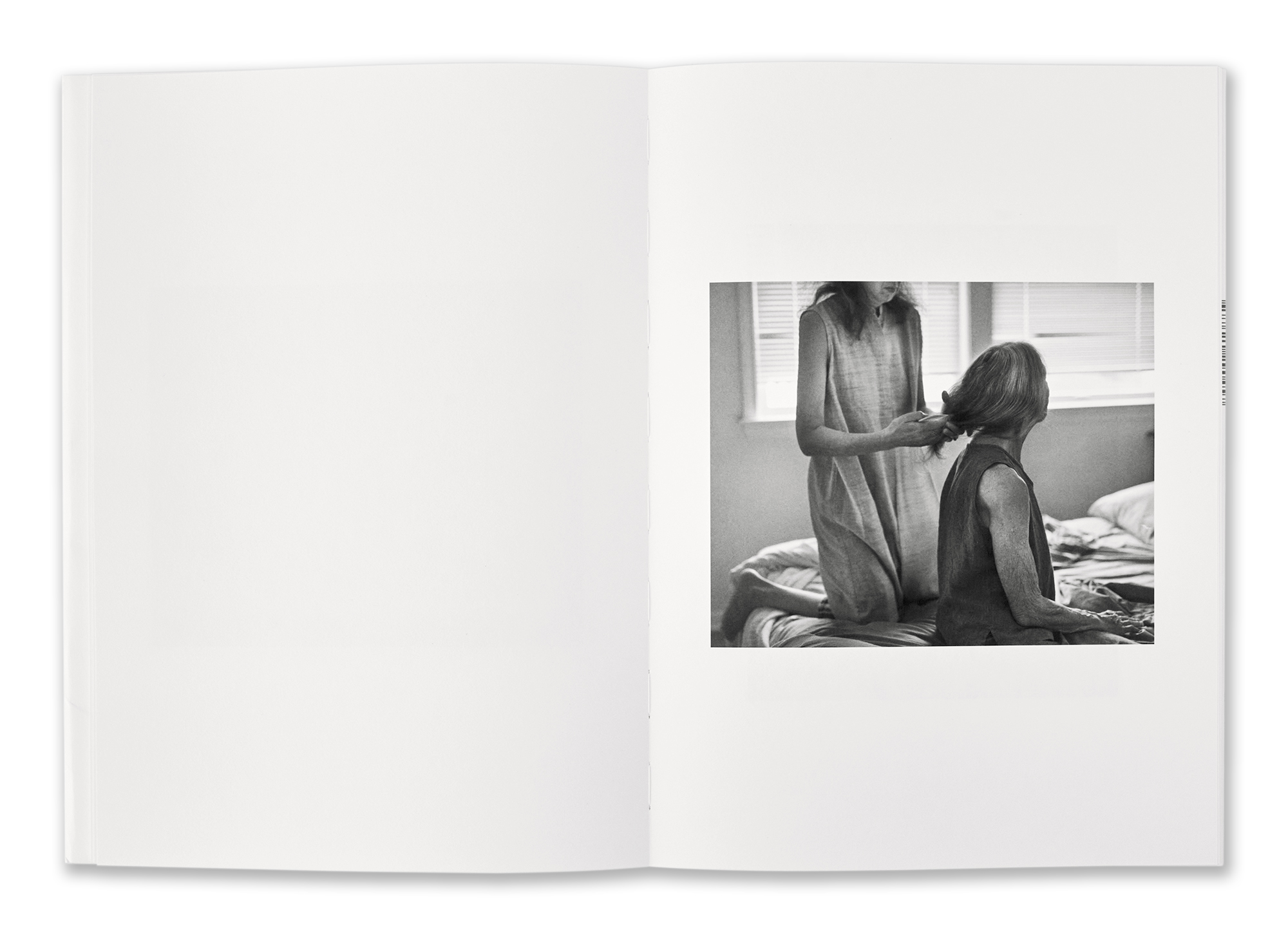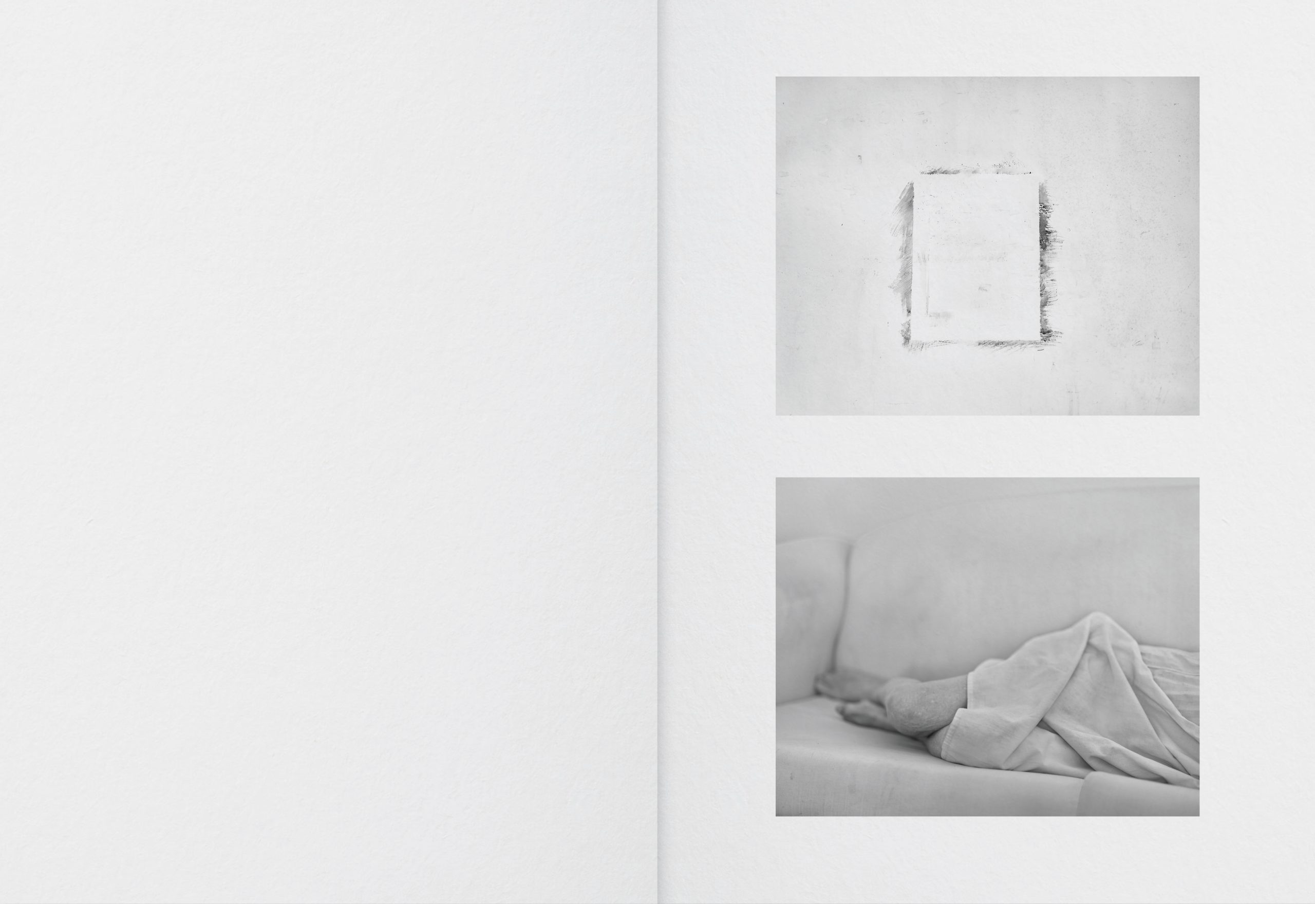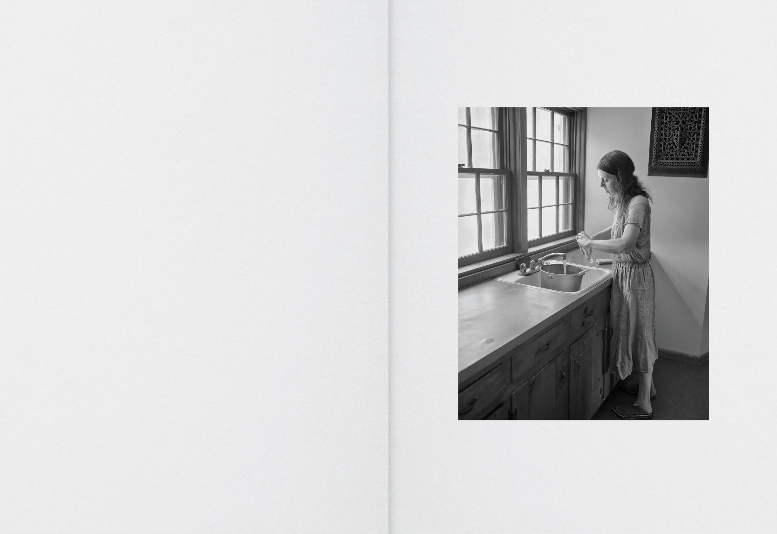 4 Sides of The Table was made from 2022-24. In the spring of 2017, I was with my mother in an empty room. The light of the sun was shining through the windows. Her best friend June was at her bedside reading poetry aloud. My mother died a few hours later. Since I could no longer take pictures of my mother, it seemed natural to me to photograph June. I photographed her hands, her legs, from the back, from the front, partial views etc. feeling I could convince myself she was my mother more easily by photographing her in parts rather than in showing her whole figure. During the months that I was visiting June, her daughter unexpectedly passed away. I thought after that she might not want to continue our time together taking pictures, but she did. The camera gave us the freedom we needed to imagine we belonged to each other.
