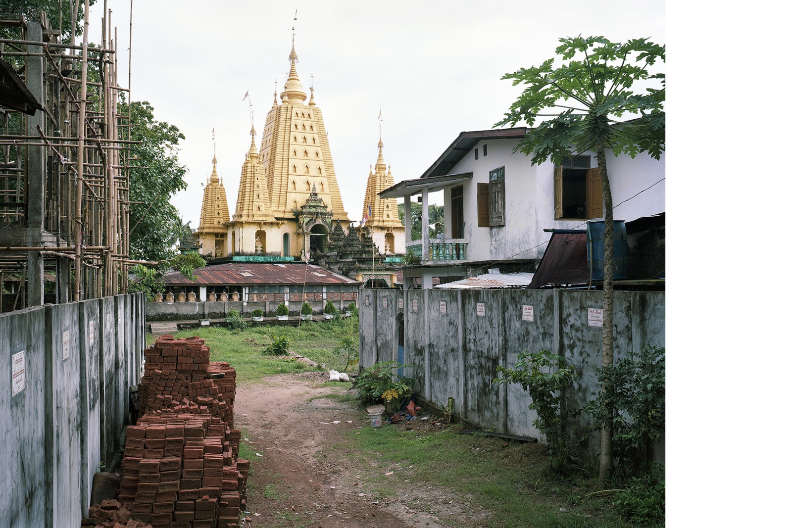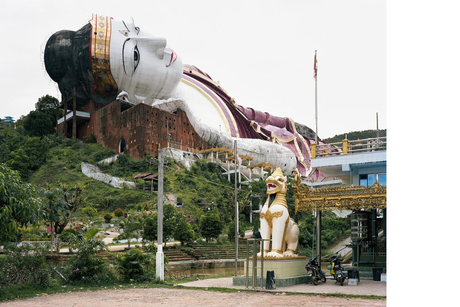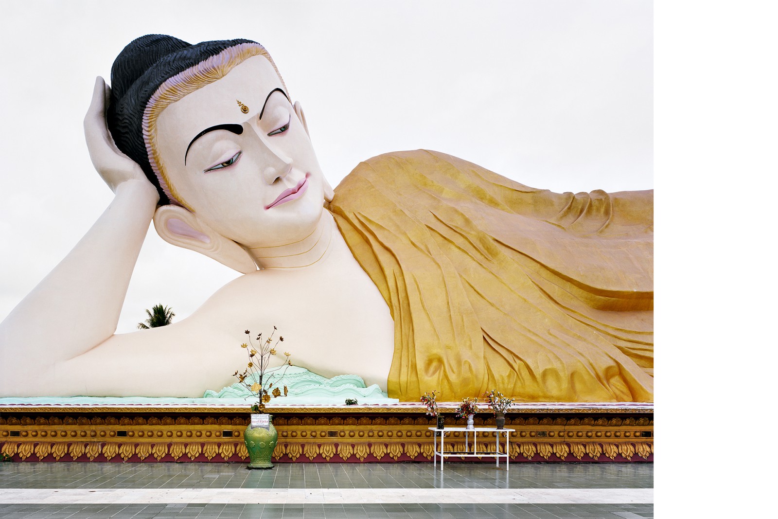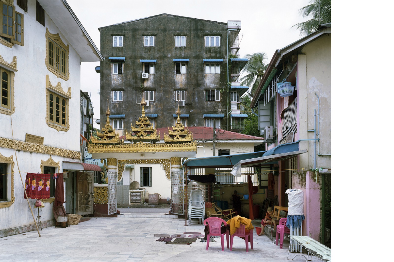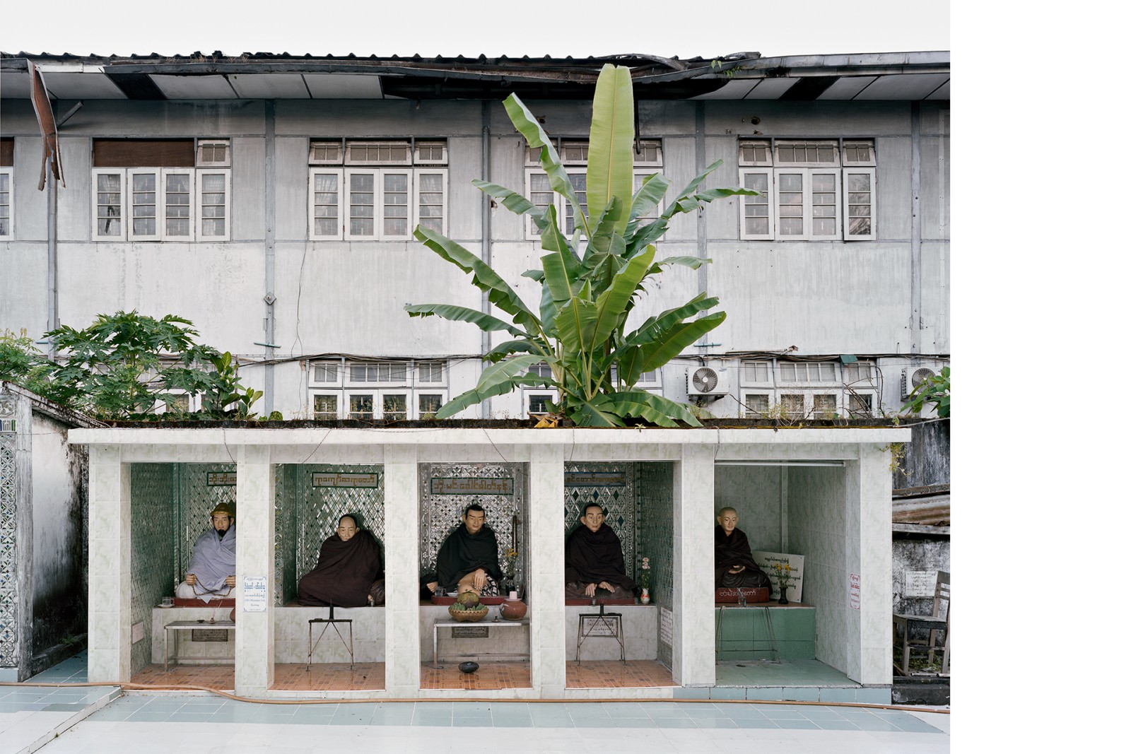 A country in transition: After nearly fifty years of dictatorship, the military in Myanmar initiated an unexpected opening up of the country in 2011. Since then, the country has found itself in a permanent state of tension. Two years later, the photographer Hans-Christian Schink (*1961) traveled to Myanmar several times. In his quiet photos, Schink shows religious sites and symbols in the landscape as well as in urban space and thus addresses the ambiguous role of religion. These works are coupled with views of cities such as Yangon, Mandalay, Lashio, and Nyaungdon, in which the situation of upheaval is also visible in the streetscape.