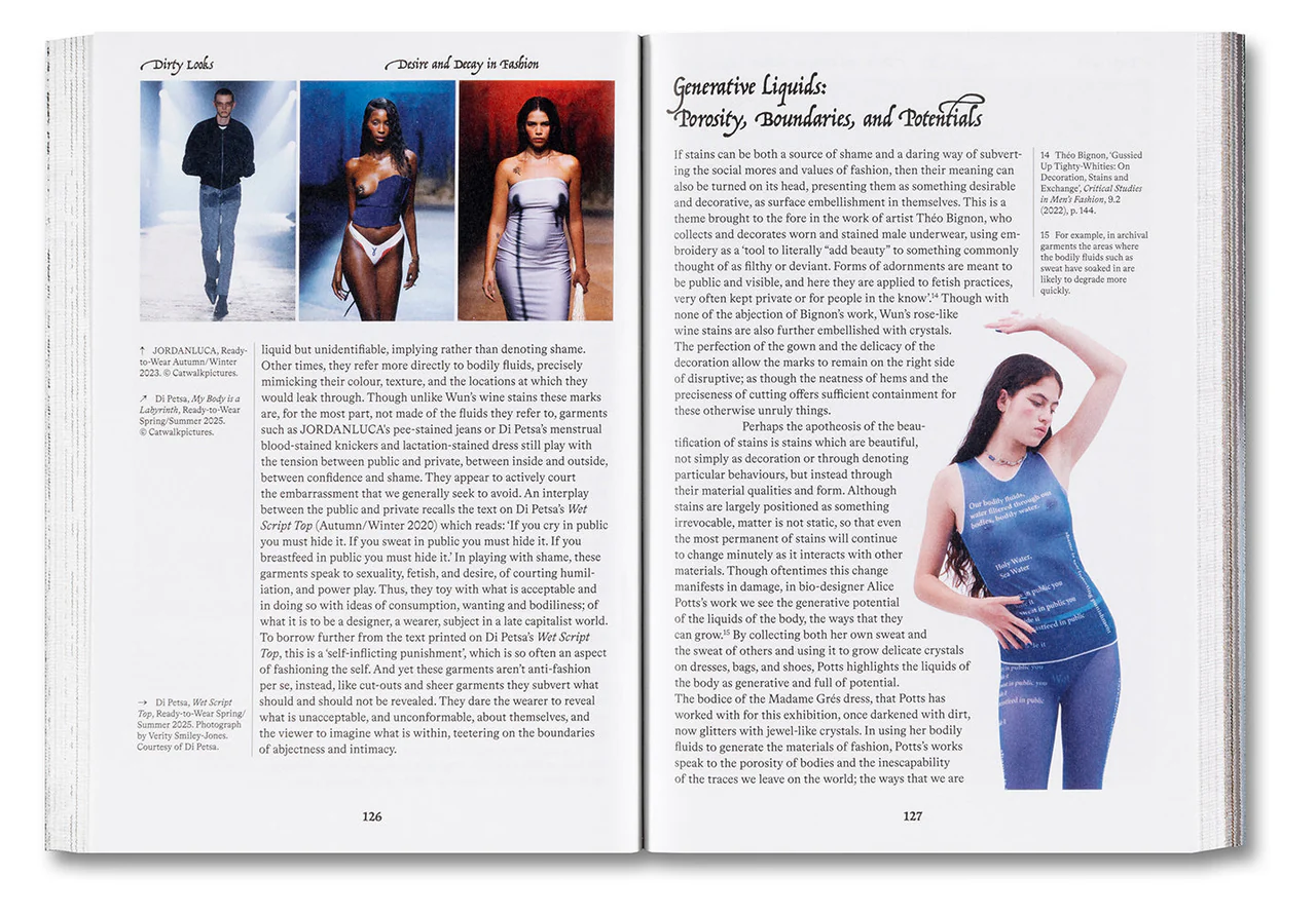 This richly illustrated anthology features new essays by influential voices in contemporary fashion, including Caroline Evans, Akiko Fukai, Lou Stoppard, and Sara Arnold. Their writing spans decolonial critique, feminist resistance, fashion’s environmental cost, and the tension between bodily intimacy and public display. Alongside these texts, an extensive photographic portfolio by Ellen Sampson captures iconic garments that embody the project’s themes in sharp, forensic detail. Featured designers include Vivienne Westwood, Hussein Chalayan, Comme des Garçons, Issey Miyake, Alexander McQueen, Maison Margiela, and many more.