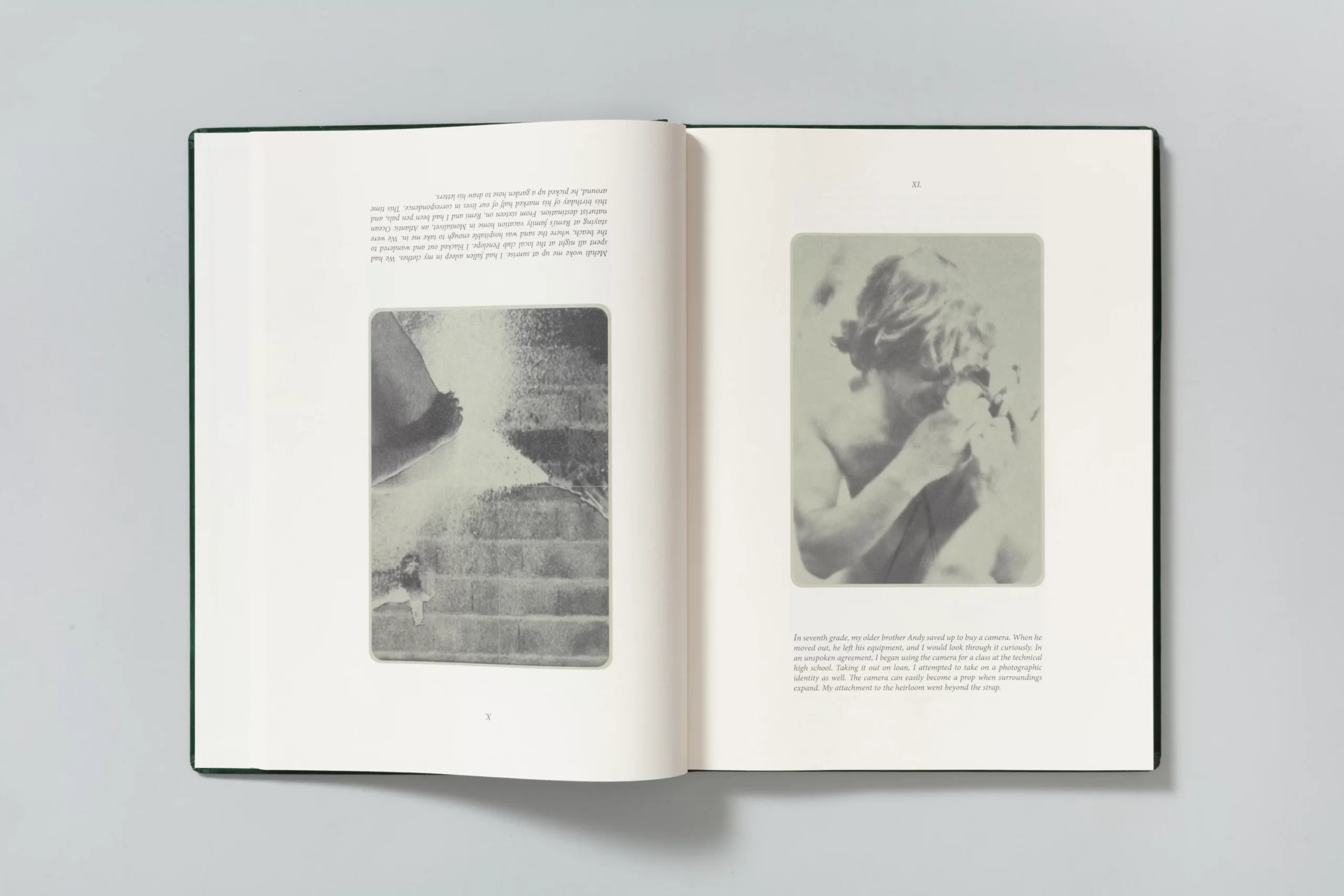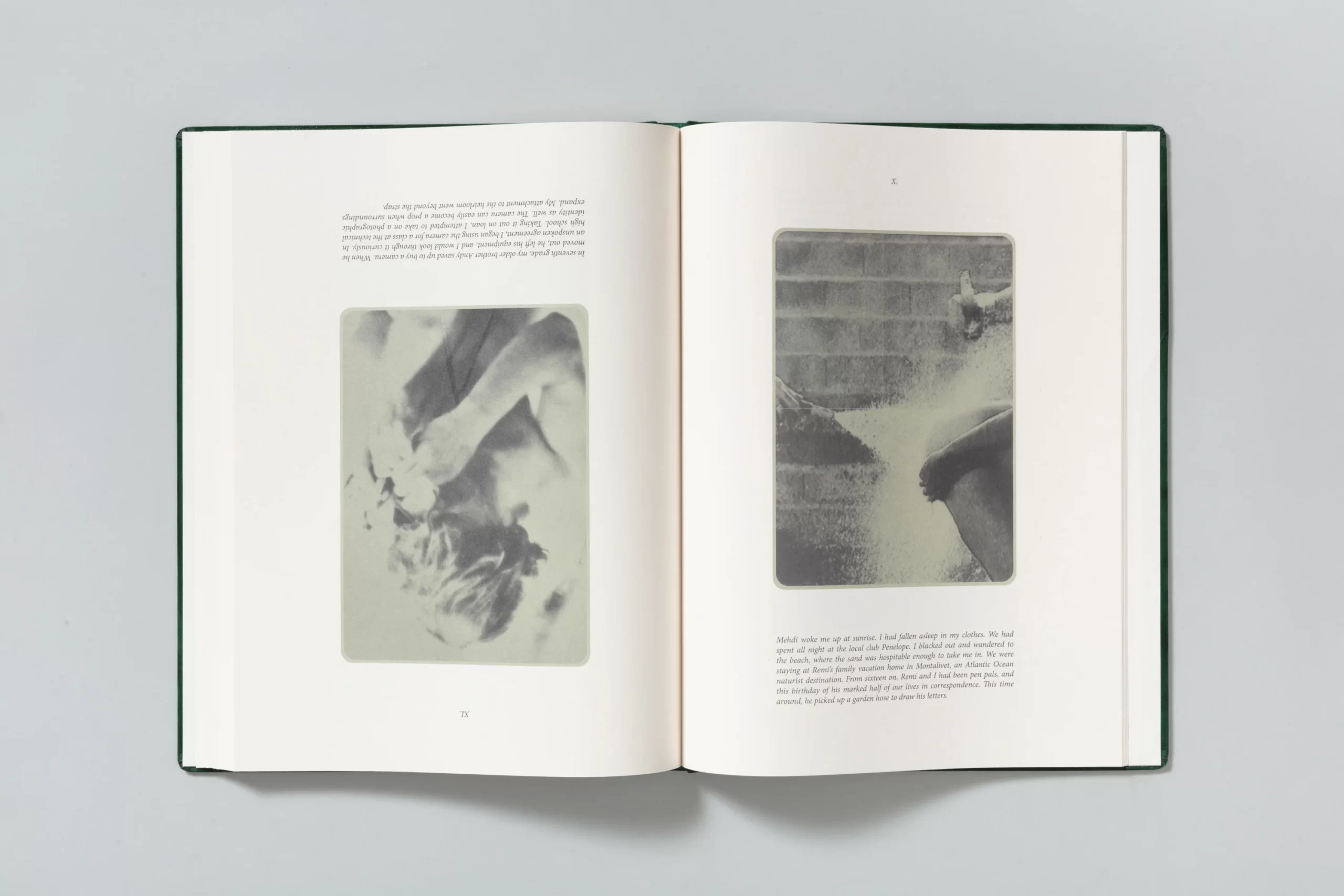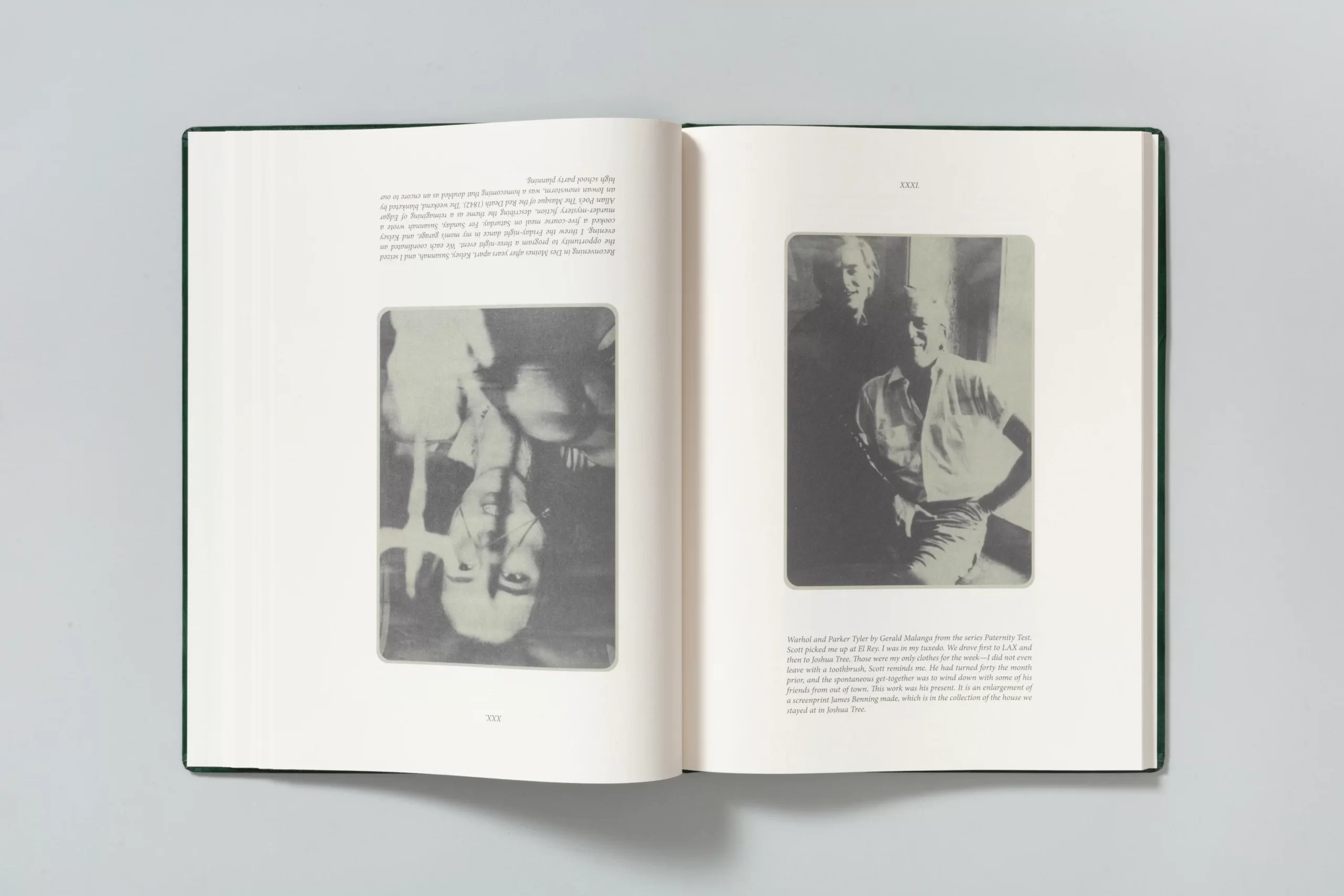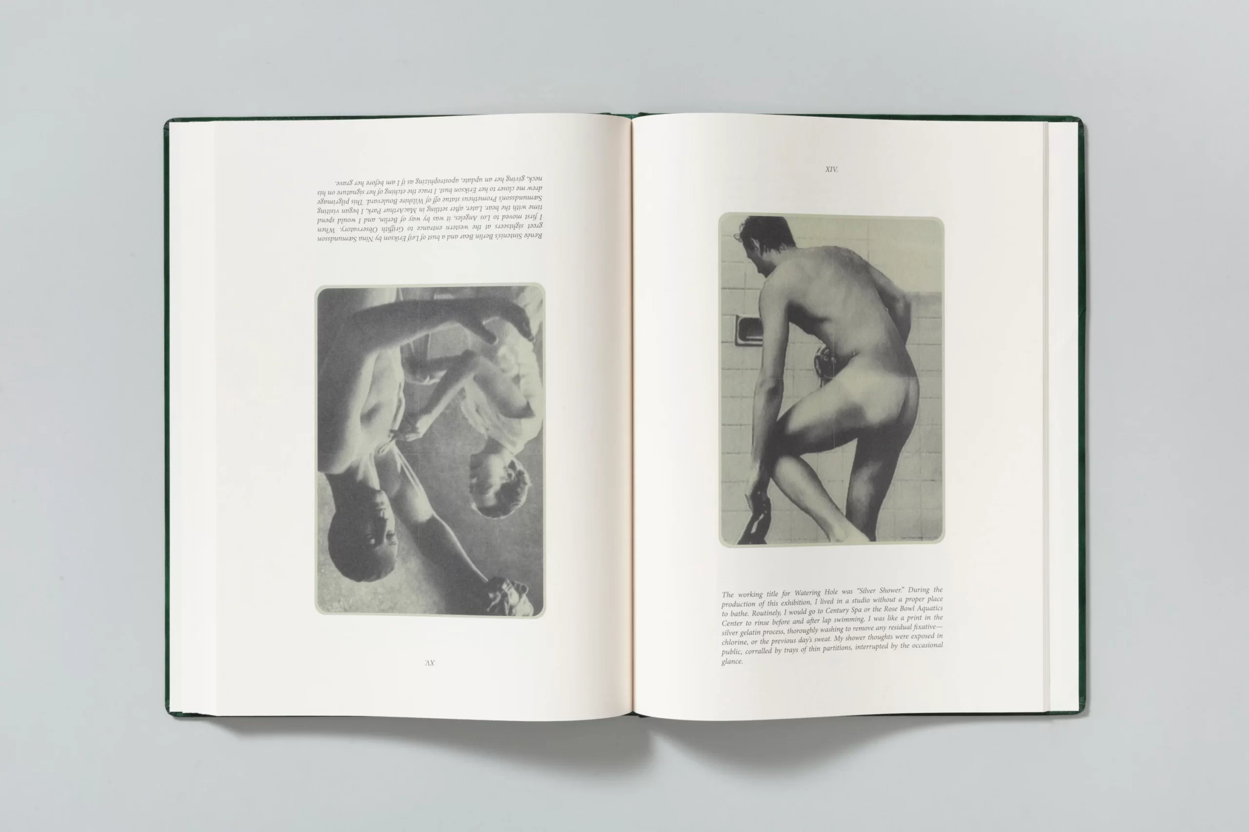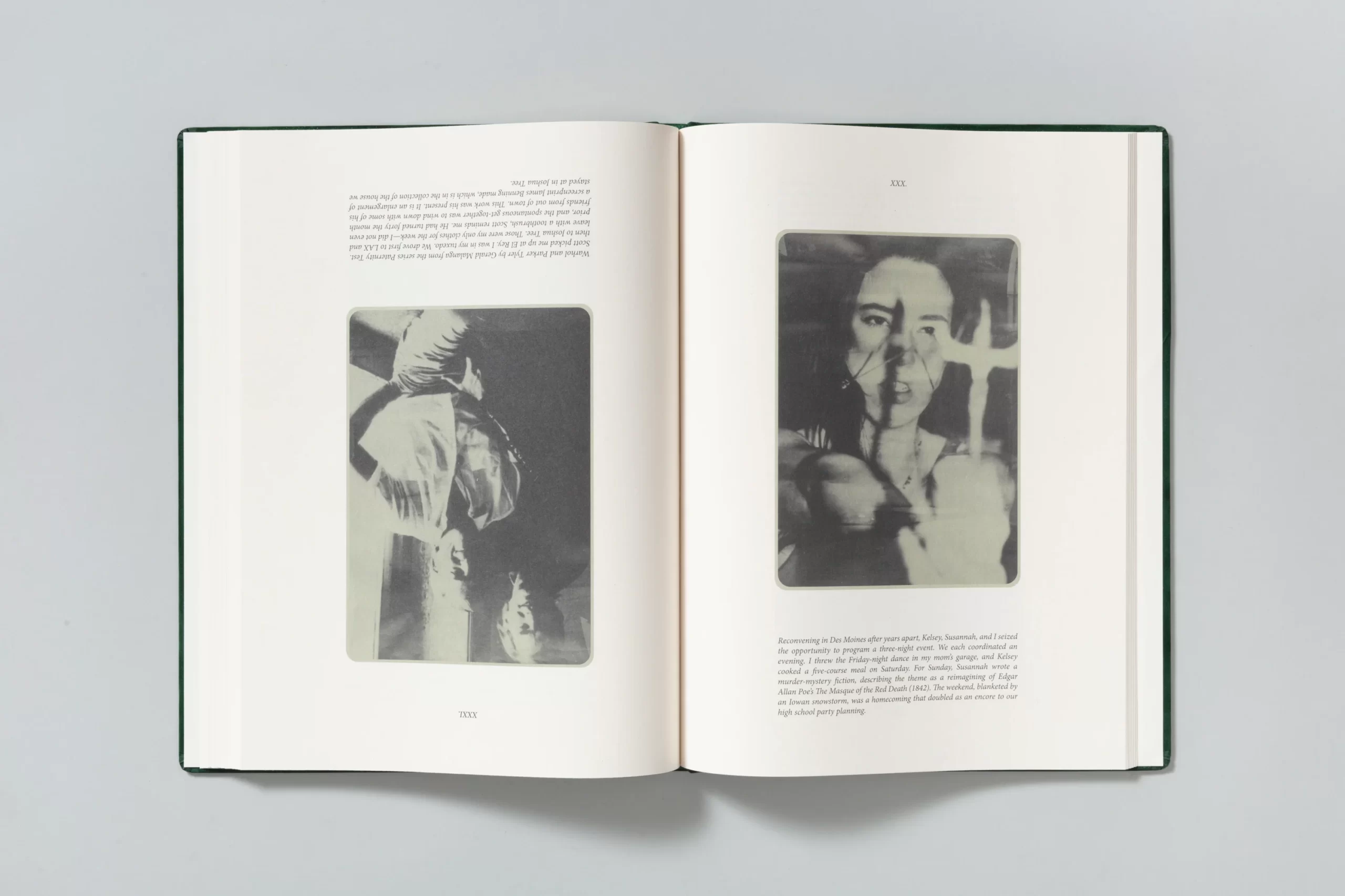 The photographs are either created by the artist in a performative manner or appropriated from cinema, television, and pop culture, past and present. The circulation and repetition of motifs invite collaboration and reflection, emphasizing the act of shared viewing as part of the work’s meaning. The book collides ( both literally and metaphorically) at the halfway point, designed to be exactly the same from front to back—revealing no beginning or end, but rather an infinite loop that can be entered from any point.