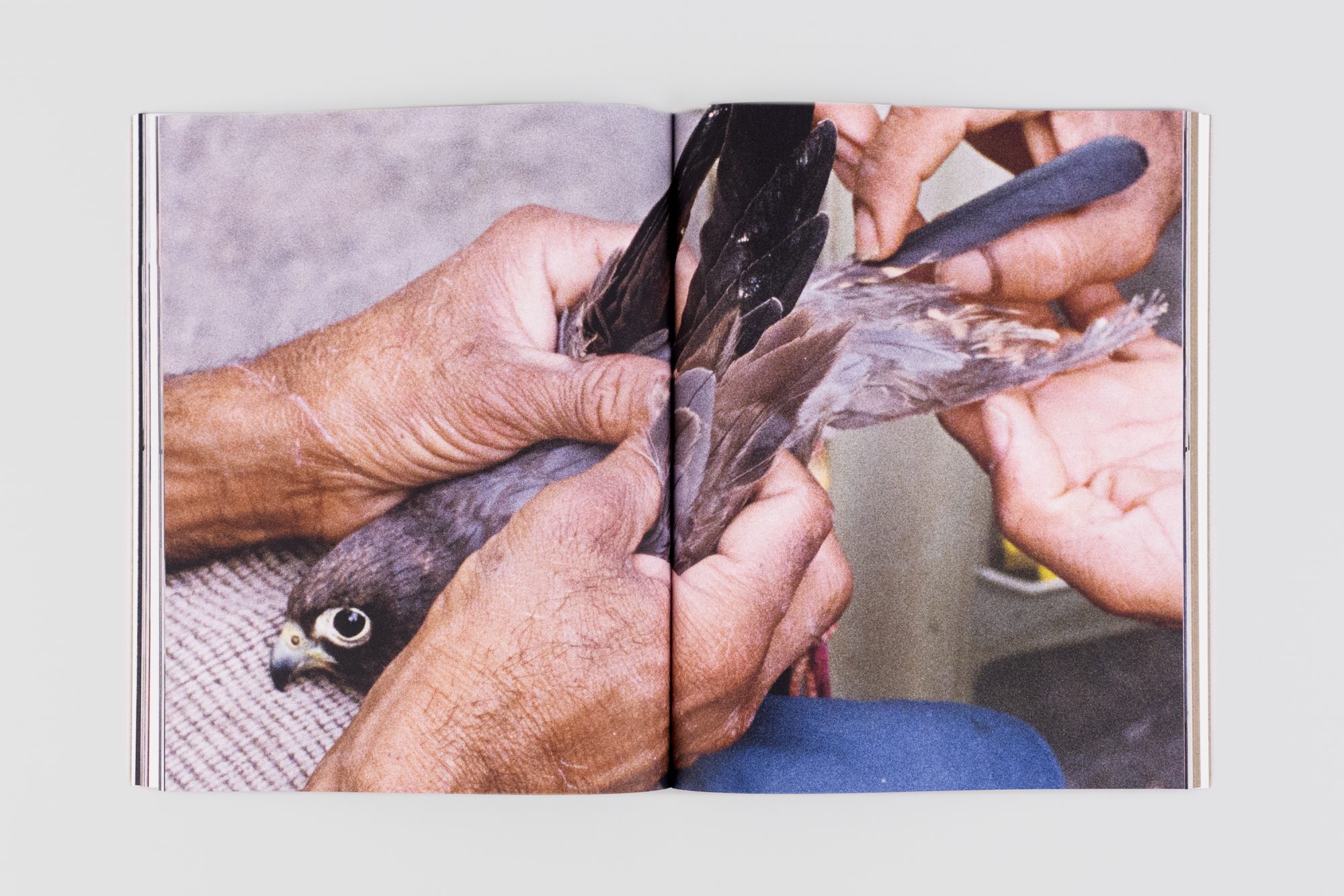 A companion to Elisa Caldana’s exhibition ‘The Falcon of Karachi’, this publication expands on the themes of disappearance, identity, and human-animal relationships through the elusive figure of the Laggar falcon. Overlooked and considered a “minor falcon,” the Laggar has long been absent from historical depictions – only now gaining attention in the face of its looming extinction. Through counter-narratives and counter-images, Caldana challenges perceptions of value and recognition, exploring the paradox of wilderness within captivity. With captivating interviews and context, it deepens the exhibition’s inquiry, tracing the falcon’s legacy beyond its fading presence in the wild.