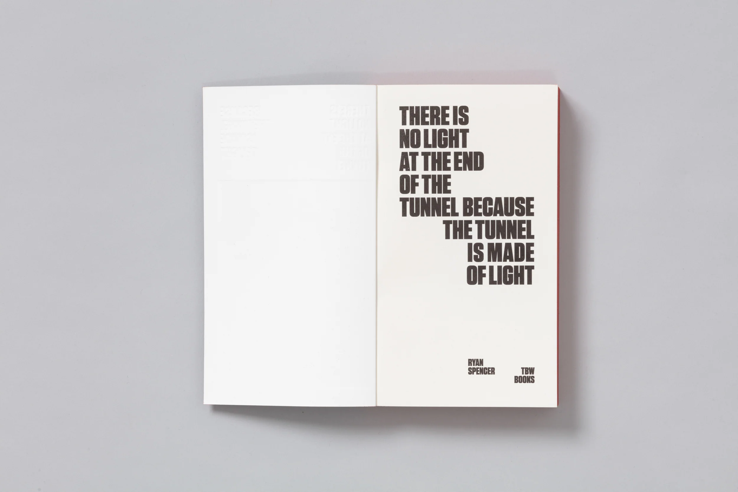 In 1996, rock band The Afghan Whigs released their album Black Love, a musical opus that changed the lives of many of the group’s loyal followers. The well-known lore that a film would accompany the record never came to fruition, leaving devotees to wonder what such a visual accompaniment might have looked like. There Is No Light at the End of the Tunnel Because the Tunnel Is Made of Light is Ryan Spencer’s personal rendering of this mythical film (that never was) in book form. Using stills from neo-noir films set in Los Angeles that could quite possibly exist as scenes from the imagined moving picture, and with a keen understanding of and appreciation for photography and old cinema, the artist stitches together a narrative directed by the song titles and linear narratives of The Afghan Whigs’ epic record. Rebecca Bengal’s fictional essay anchors the book’s stylized, physical “pulp” qualities.
