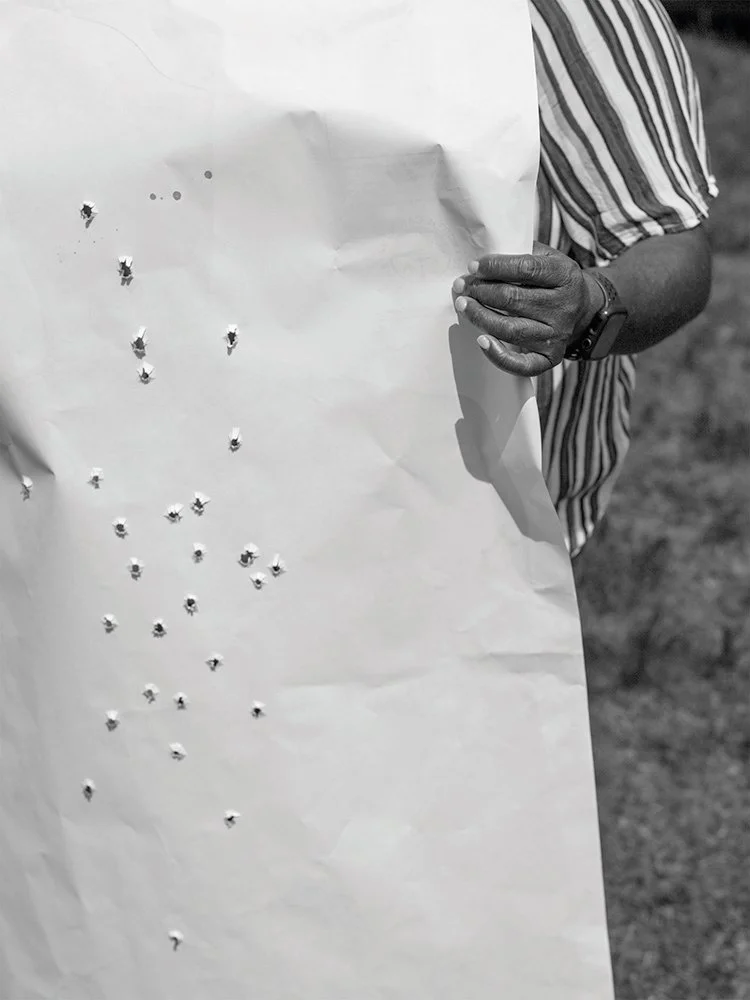 Odette England collects found photographs showing men taking pictures of women without permission, women rejecting the camera by placing their hands over their faces, men posing with guns, and hands. For England, these images suggest a complex relationship between guns, cameras, and violence against women. There is a shared vocabulary between guns and cameras that load, aim, and shoot. In making these connections, England hopes to surface the problematic visual habits embedded in our culture and to work towards an alternative way of using the camera to share our voices rather than normalize violence. Shortlisted for the 2023 Images Vevey Photobook Award and awarded a grant from The Puffin Foundation.